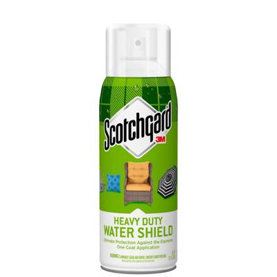 Be ready for any adventure, no matter the weather with Scotchgard Heavy Duty Water Shield. Whether your kids' coats need an extra layer of defense, or your patio furniture needs some serious water repellency, Scotchgard Heavy Duty Water Shield defies the elements with an improved formulation that helps keep clothes and gear drier, longer. So gear up, get out there and enjoy the great outdoors with Scotchgard Heavy Duty Water Shield. Safe for use on polyester, nylon, polypropylene, cotton, leather, suede and more Creates durable protection from the elements with just one application Ideal for use on outerwear, rain gear, umbrellas, patio furniture, outdoor gear, backpacks, luggage, canvas tarps, boat covers and more Repels water during use and in storage Fabric maintains breathability Dries odorless One can provides 60 sq. ft. of water resistance on light nylon or 20 sq. ft. on heavier fabrics Reapply Scotchgard Heavy Duty Water Shield seasonally