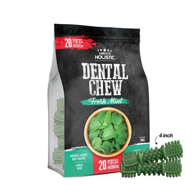 Absolute holistic dental chew are uniquely shaped to act like a toothbrush to effectively scrape plaque and tartar. They are designed with 360 nubs and ridges with hollow spaces between for better grip to clean teeth right down to the gum line while satisfying the canine instinct to chew.