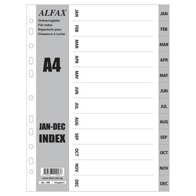 Alfax 109 Plastic Grey Divider A4 - Jan-Dec index