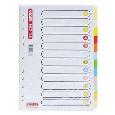 Alfax 907-12 Paper Divider A4 - 12 colour index