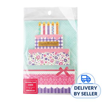 Cute greeting card and envelope for birthdays or invitation cards. Card is in the shape of a cake. Size: (W)210 x (H)145mm.