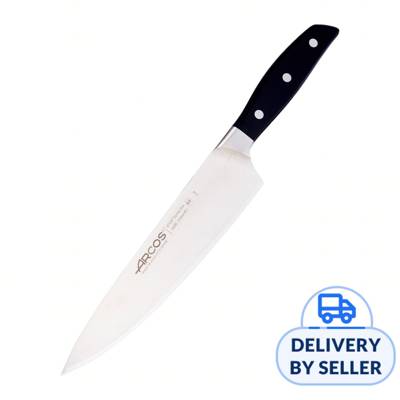The Arcos Manhatta range is the latest in the forged knife series which represent knives made of the highest quality, used by both professional and domestic users alike. Forged from a single piece of NITRIUM Stainless Steel, with a half-ferrule that facilitates cutting and sharpening, the Manhattan range is highly comfortable to use with its ergonomic lines. New to the Manhattan series is the special silk blade edge, created by combining traditional and cutting edge technology to produce a unique and accurate cut. NITRIUM Stainless Steel is an exclusive material used for the blade and provides additional hardness, greater cutting power and improved cutting edge durability, compared to conventional Stainless Steel. The handle is made of Polyoxymethylene with Stainless Steel rivets, is highly resistant to impact, abrasion, and solvents, and able to withstand high and low temperatures between -40�C to 150�C degrees celcius. Product is manufactured in Spain.