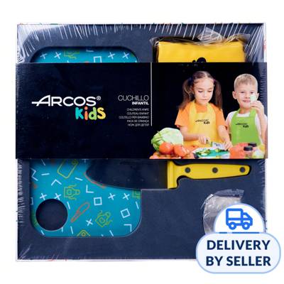 Introduce your kids to the kitchen with the new Arcos Kids Knife Set. Made with the same nitrium stainless steel as used in all Arcos knives, but rounded at the tip for safety. The handle has a finger guard for comfortable finger placement when using the knife. Comes complete with a cutting board, kids apron and finger protector to complete the MasterChef Junior experience! Available in both green and yellow colours. Cooking can be a great experience for the little ones at home, as it allows them to play, learn and develop healthy eating habits. However, it is a task that must be carried out with care and using utensils adapted to their age. For this reason, Arcos presents the Kids Cooking Set, designed especially for children. The stainless steel blade makes it hard and durable. The rounded tip is rounded for greater safety for children when handling them. The Polyoxymethylene (POM) handle is resistant to high temperatures and small knocks. It has an attractive green design that will attract the attention of the little ones. Includes stainless steel finger guard, chopping board and apron.