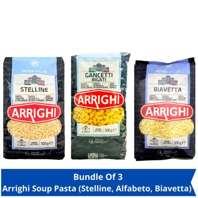 Mixed of Italian soup pasta, Arrighi Biavetta, Arrighi Stelline and Arrighi Gancetti. A natural product. No artificial colouring, no preservatives. Perfect for kids. Smooth and easy to spoon. Ideal for soup-based dishes and great with light sauces. Highly Nutritional, Stimulates their imagination while they enjoy the goodness of the meal.