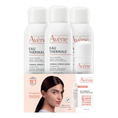 - The Avene Thermal Spring Water Spray soothes, strengthens and rebalances sensitive or irritated skin that shows signs of discomfort, redness, itching and tightness. The Avène Thermal Spring Water Spray can be used daily to help eliminate residual impurities after cleansing or to prepare the skin and make it easier to apply moisturisers. With an immediate anti-dryness effect, the Thermal Spring Water Spray can be used by the whole family for soothed, strengthened and healthy skin.