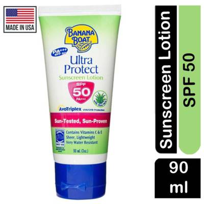 Banana Boat Ultra Protect SPF50 Sunscreen Lotion with AvoTriplex technology provides UVA/UVB sunscreen protection from sunburn and damaging UV rays in a sheer feel lotion that is proven to be long-lasting and effective in the sun when used as directed. It is also blended with moisturizers, Aloe and Vitamins C & E. It will not run into eyes and is quickly absorbed by the skin.