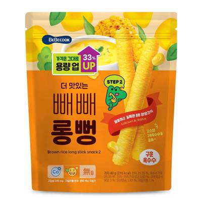 BeBecook Junior's Jumbo Brown Rice Sticks are healthy, delicious and simply fun to eat for the little one. Made with premium organic Korean brown rice, high oleic sunflower oil, freeze-dried blueberry powder and xylitol for an all natural great taste and colouring. Slim and long(~14cm) stick design facilitates easy grip, self-feeding and keeps your baby engaged longer! Enriched with Calcium. No artificial additives (flavouring, colouring and seasoning). Comes in a resealable and portable pouch. Safe and clean production under HACCP system. Made in South Korea. Suitable from 12 months. Net Weight: 40g