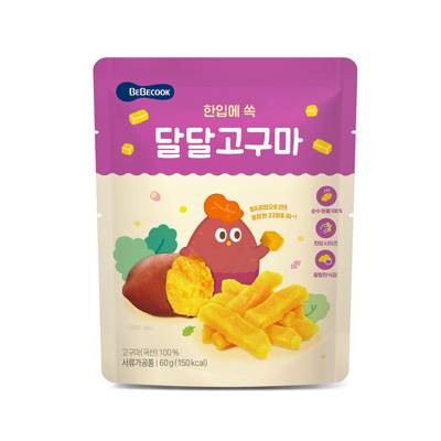 The BeBecook My First Yummy Sweet Potato Snack is a healthy snack made of 100% Korean-grown sweet potato. The steamed, soft texture and natural sweetness of the sweet potato will keep your little one begging for more. Perfectly-sized for little fingers to encourage self feeding. Portable packaging makes it convenient to feed your baby when out and about. No artificial flavours, colours or sweeteners added. Suitable from 13 months. Net Weight: 60g