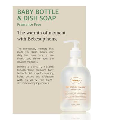 The warmth of moment with Bebesup home! The momentary memory that made you shine, makes your daily life more cozy, so we cherish and deliver even the smallest moments. Dermatologically tested hypoallergenic premium baby bottle & dish soap for washing fruits, bottles and tableware with its worry-free plant-derived cleaning ingredients.