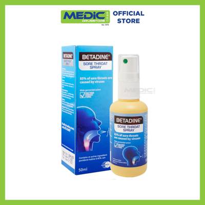 BETADINE Sore Throat Spray is a spray that kills germs that cause sore throat. It contains povidone-iodine, which is an antiseptic agent that kills germs that may cause sore throat and prevents germs from multiplying. It treats throat inflammation, irritation and sore throat. Use it for protection and symptomatic relief of sore throat and mouth ulcers. Directions for use: Spray to the affected area several times a day (every 3-4 hours). Suitable for Children above the age of 6 years.Pre-Caution: In rare instance of sensitivity, discontinue treatment and consult a physician. Contraindications: Sensitivity to iodine. Hyperthyroidism.