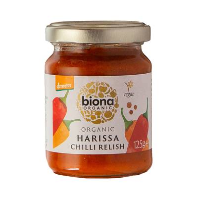 A spicy, wonderfully aromatic paste, our Biona Organic Harissa Chilli Relish is just the thing to waken your taste buds. With its fiery red colour and fragrant aroma, this tempting relish can be added to grain dishes, soups and casseroles to bring about new worlds of flavour.