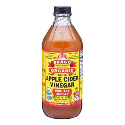- 1 to 2 teaspoons of Bragg Organic Vinegar in 8 oz glass of purified water and sweetening (optional) to taste
