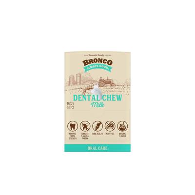 Bronco Dental Chew is a chewy nutritional treat that brings a bright smile to every doggy. Our favourite family treat has a unique texture and shape that help to control plaque and tartar. Each piece of this naturally flavoured snack is filled with protein and other nutrients to support our dog's health and overall well-being.