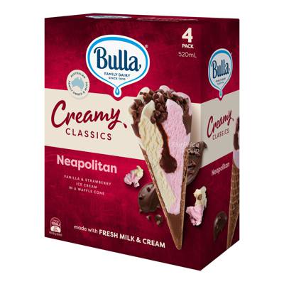 Bulla Creamy Classic Cones - Neapolitan