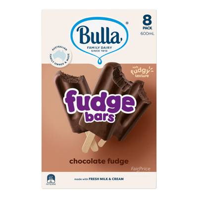 You can't fake the taste of our Bulla Fudge Bars. It's the taste of real chocolate ice cream, with a soft and fudgy texture. It all comes back to doing things the right way. Australian family owned and made. Chocolate Flavoured Ice Cream.