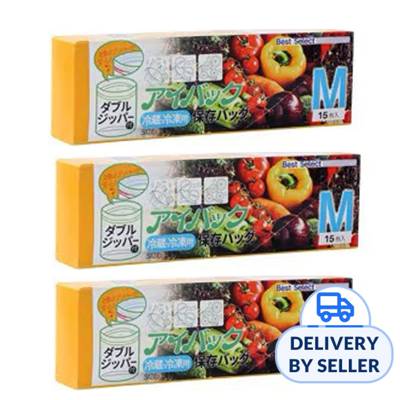 BUNDLE OF 3 Zipper Bag 1box 15 bags Food Grade PE/Freezer Use / Moist Proof/Reusable/Double Lock/ Space Efficient/18x21cm