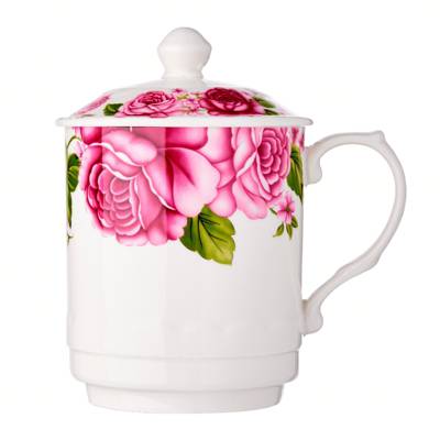 Porcelain Mug With Cover 3.6". Capacity: 400ml. Design: Pink Roses.