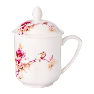 Cheng's Porcelain Tea Mug With Cover (Pink Flower)