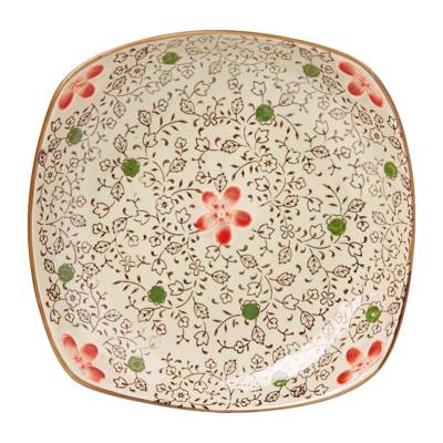 Ciya Red Blossom 8.5 Inch Porcelain Square Dish