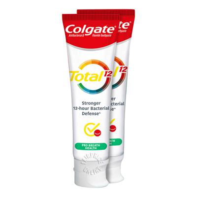 Colgate Total Pro Breath Health Toothpaste provides 12 hours Whole Mouth Protection against Bacteria build up. It also has an odor controlling technology that fights bad breath continuously.