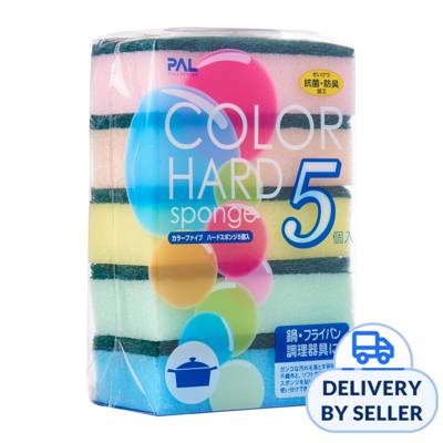 Ideal for washing pot, pan, cooking tools. Hard sponge with abrasive.[5pcs./set] Size:(Sponge)60x110x35(H)mm. (Package)60x110x175(H)mm. Materials: polyester non-woven fabric(with abrasive), polyurethane foam.