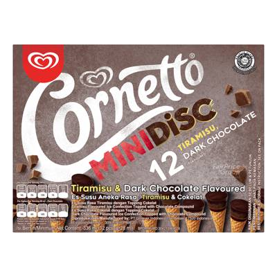 - Dark chocolate ice cream with chocolate disc topping & Tiramisu ice cream with chocolate disc topping.