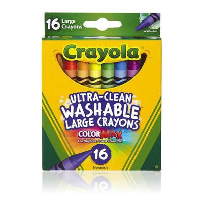 The Crayola Washable Large Crayons are soft enough to blend and hard enough to resist wear. Brilliant colours and smoother lay down. Easily washes off walls with warm water and a cloth.