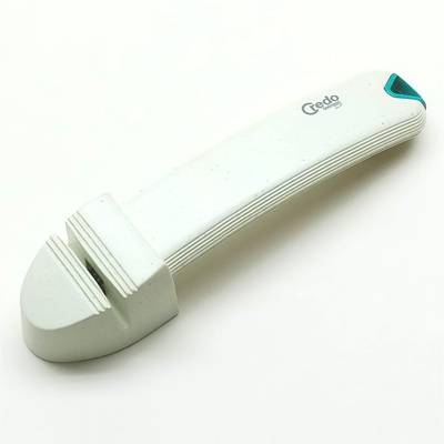 The Classic knife sharpener is produced by master craftsmanship in Germany with a futuristic design. Made easy to operate with a roller sharpener mechanism while placed firmly on the tabletop. Make of high grade materials and easy to clean. Handle comes in assorted colours. L17.5 W4.2 H3.5cm.
