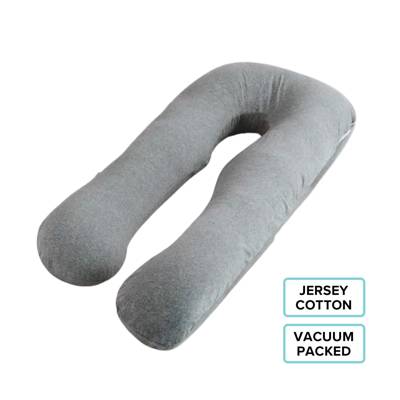 A multi-purpose maternity & nursing pillow that designed to follow the natural contour and unique shape of your body. The comfort U-Shaped pillow helps to align and support your hips, neck, shoulders and back all while helping to regulate body temperature and enhancing circulation for a deep, restful sleep during pregnancy. Post-pregnancy, it can be used as a nursing pillow to provide support under your arms. Full body U-shaped maternity pillow. Supports back and belly during pregnancy. Microfiber filling. Provides cushion when nursing baby. Elevates body to comfortable nursing position. Neck, shoulders, knees, hips and back support to relieve discomfort. Comes with a removable and machine washable cover. Extra soft, smooth, airy, slightly stretchy cover made with 100% cotton / jersey cotton. Two-way zipper removable cover for easy cleaning. Dimensions: 140cm x 80 cm (Thickness ~20cm). Pillow weight: 3kg