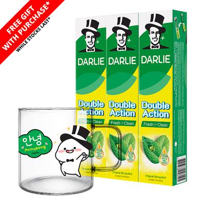 - • Darlie Double Action Fluoride Toothpaste is enriched with natural spearmint and peppermint essences.