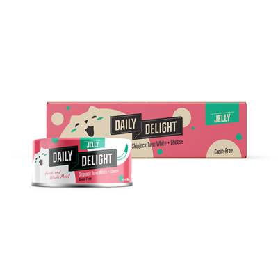 Daily Delight Jelly contains chunks of skipjack tuna that are 100% grain-free and suitable for all life stages. This cat food has 6 flavours with benefits such as being rich in DHA, minerals, Vitamins, giving strong bones and good oral health, supporting healthy immune systems and promoting healthy heart circulation.