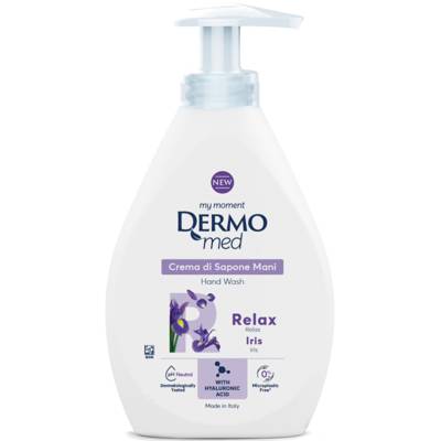 Dermomed RELAX Cream Hand Wash leaves your skin feeling velvety soft, dermatologically tested, neutral pH, microplastic-free*, with Hyaluronic acid and glycerine.