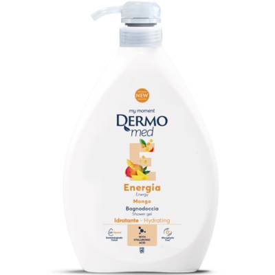 "The ENERGY shower gel with mango, with its enveloping and tropical notes, makes the skin energized and hydrated . Immerse yourself in an exotic experience with Dermomed Energia scented shower gel with mango , with enveloping and tropical notes. Delicious perceptions with the sweet aroma of mango for a shower gel that respects the skin, energizing it. This hydrating shower gel is formulated with hyaluronic acid and glycerin with emollient and skin-repairing properties."