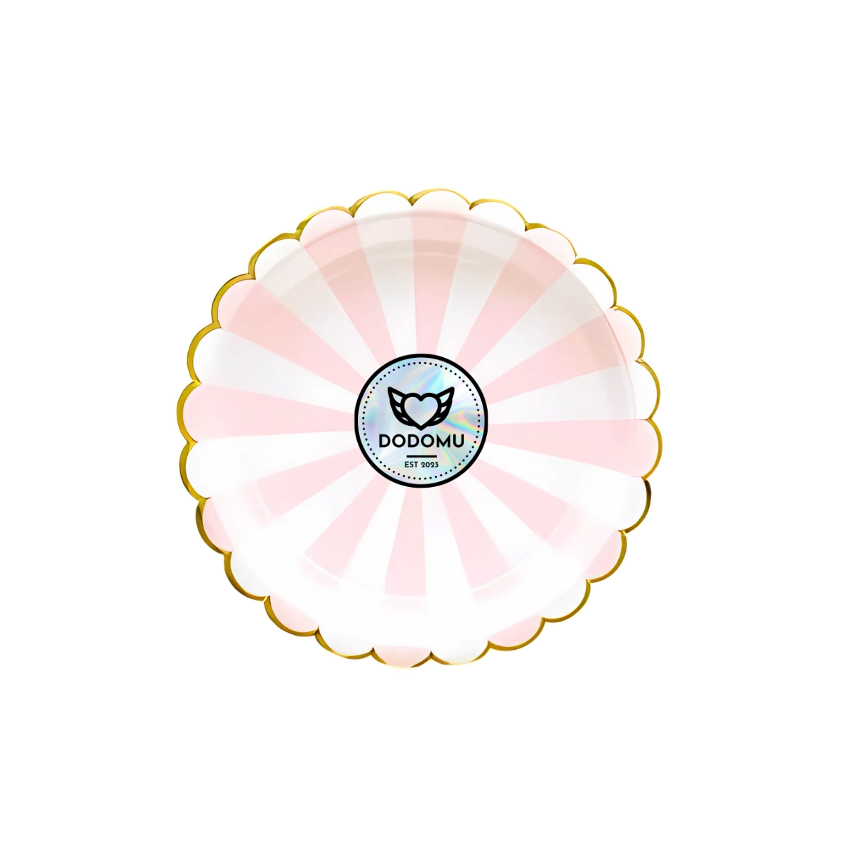 The Dodomu Lolli Party 7 Inch Paper Plates in Pastel Pink (10pcs) that are made from durable paper material offer a charming touch to any celebration and perfect for serving snacks or desserts.