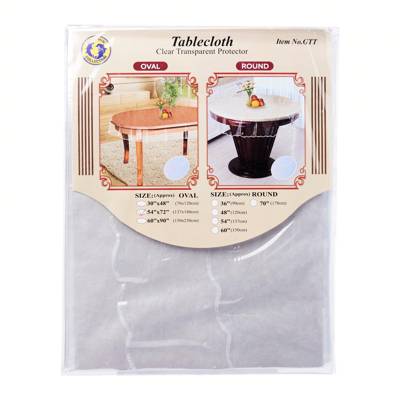 Pvc Clear Transparent Tablecloth. Size: 54X72" Oval shape. Thickness: 0.2mm. Material: 100% vinyl. Used for 4-6 seater table.