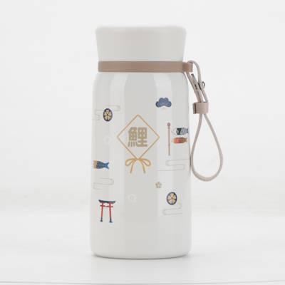 Capacity: 320ml; Features: BPA Free, 18/8 stainless steel inner and outer shell, inner lid with 304 stainless steel, smooth rim & strap for easy carrying. Color: White.