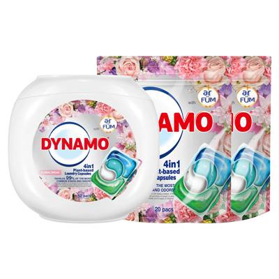 - • Dynamo 4in1 Laundry Capsules Refill 20 Pods x 2 Packs - Floral Dream