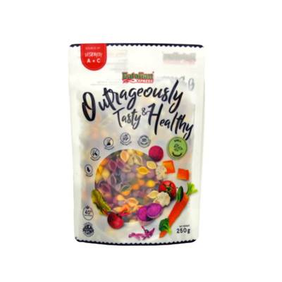 Made from a combination of 10 different types of fresh vegetables, durum wheat semolina flour and water. The vegetables used are - spinach, carrot, pumpkin, broccoli, beetroot, sweet potato, tomato, red spinach, purple carrot and cauliflower. Recommended for 8 months old & above