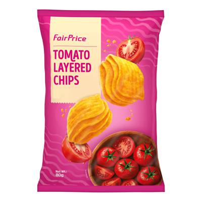 Enjoy the crunch and bold flavours of FairPrice Tomato Layered Chips with bold and tangy tomato flavour. You'll keep coming back for more!