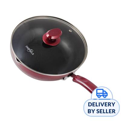 High-density aluminum alloy material fast heating and control of fumes generated effectively with non-stick coating, do not use metal spatula Wooden spatula is recommended Handles and knob for glass lid are in wooden material Glass lid for easy checking on the cooking process 1 year local warranty