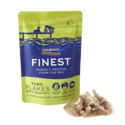 Fish4Dogs Tuna Flakes with Anchovy is a tasty complementary wet food for adult dogs.