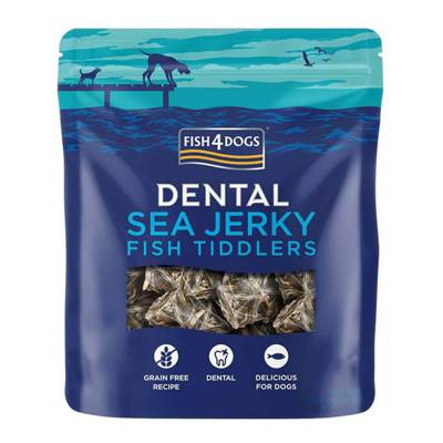 Dogs love these delicious treats! Sea Jerky Tiddlers are made from 100% fish skins which are naturally low in calories. Its rough texture helps remove tartar and support canine dental health. - Supports dental care - Contains Omega-3 - Made from 100% fish skins.