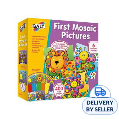 Product Description A fun activity to encourage manual dexterity, colour and shape recognition as children match the foam tiles to the coloured shapes in the pictures to create 6 colourful mosaics. The foam shapes are self-adhesive with no glue required, ideal for travel. Product Features 6 mosaic pictures size: 20 x 20cm (8" x 8"), 6 sheets with over 400 sticky foam tiles in assorted shapes and colours and play guide. For 3+ years