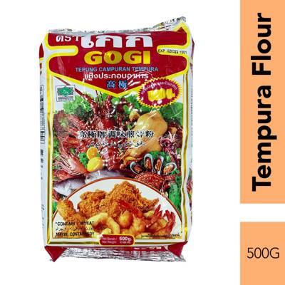 Gogi Tempura Flour ( ) is the favorite tempura flour of the Thai kitchen. Vegetables like pumpkin, carrot or onion and meat and seafood especially shrimp are delicious deep-fried in this tempura batter. Serve with Sweet Chilli Dipping Sauce for a quick meal or snack.