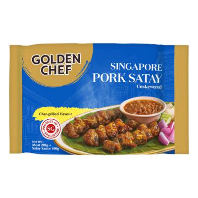 - Inspired by the authentic flavours from the street satays in Singapore, Golden Chef brings you the tantalising taste of our pork satay. Marinated to achieve charred perfection with its secret recipe, every bite is a memorable experience. Elevate your meals and gatherings with the juicy, BBQ-like goodness of this mouth-watering satay.