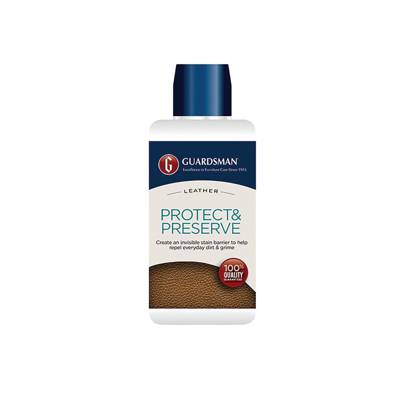Guardsman Leather Protect & Preserve is an easy way to keep your leather furniture, auto interiors and fashion accessories looking like new. The leather protector forms an invisible barrier that protects leather furniture against spills and stains while repelling dirt and grime. This barrier maintains the softness and suppleness of leather and makes cleaning up any messes a breeze - so you can keep the luxurious look of your leather furniture for years to come. Product Description: Forms an invisible barrier to protect leathers topcoat against premature aging and irreversible damage from penetrating stains Improves stain and oil resistance for easier cleaning, helping to repel daily dirt and grime pH balanced to maintain leathers soft and supple feel Retains leathers rich color Use on finished, aniline and semi-aniline leathers as well as vinyl. Not for use on suede or nubuck leathers Created exclusively for Guardsman in Italy by Fenice, the worlds most renown leader in the protection of fine leather for the furniture, auto and fashion industries. A family company founded in Northeast Italy in the early 1970s, Fenices constant objective is the care and maintenance of products for the long-term functionality and beauty of leather Imported from Italy
