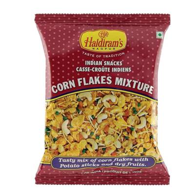 Crispy cornflakes, rich dry fruits and spicy namkeen, blended into the ultimate snack! Generously drizzled with flavourful spices, this original mix is deliciously filling. Haldiram's Corn Flakes Mix beats the peskiest hunger pangs!