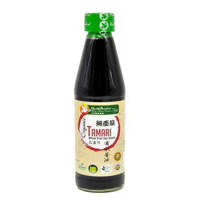 Health Paradise Organic Wheat-free Tamari sauce is a high quality protein seasoning. It is a brewed soy sauce made from soybeans and sea salt. Use it instead of salt for better flavor and reduced salt intake. Our organic Tamari sauce is naturally fermented for many months in wooden kegs without temperature controls. Tamari has the same nutritional value as shoyu but it has its own distinct color and flavour. Gluten free.