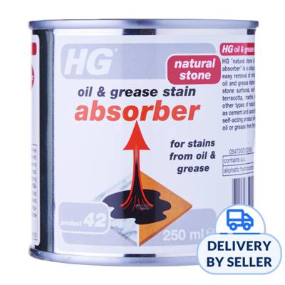HG natural stone oil & grease stain absorber (HG product 42) is a unique product for the easy removal of virtually all types of oil and grease stains from all porous stone surfaces, such as flagstones, terracotta, marble, sandstone and other types of natural stone, as well as cement and concrete floors. It is a self-acting product which absorbs the oil or grease from the stone.