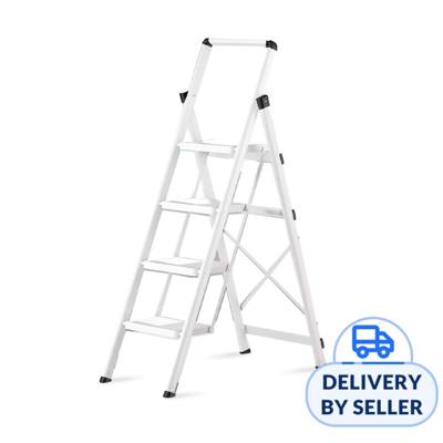 Step Skyward with HOUZE-Stáli's Ingenious Creation! Say hello to HOUZE-Stáli's 4-tier Slim Carbon Steel marvel—a titan in a tuxedo, if you will! This compact dynamo weighs a featherlight 5.05 kg but packs a punch of might. The extra-wide pedals? Think of them as your stage for safe ascents. Plus, a non-slip mat for your standing ovation. Folds thinner than a bestseller at just 4.6 cm. Reach for the heavens—no setup, all safety!